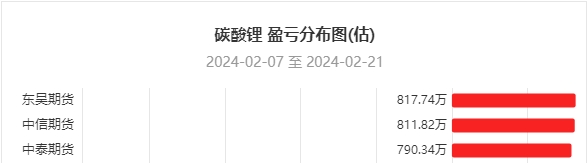 盈亏剖析:数据显示,一周内东吴期货、中信期货、中泰期货在碳酸锂上盈利居前,三机构分别盈利817.74万元,811.82万元,790.34万元。
