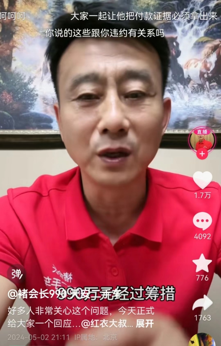 5月1日13:48,褚振亮在抖音发视频称:"自从990万拍了周总的迈巴赫之后,在我们公司团队还没有组建完成期间,确实遇到了众多实际的问题。现在的我确实精力有限,后期团队也在加速成长磨合中,难免会遇到一些问题,没有服务好大家的,在这里跟大家道一声抱歉,请各位粉丝给我一些时间。"