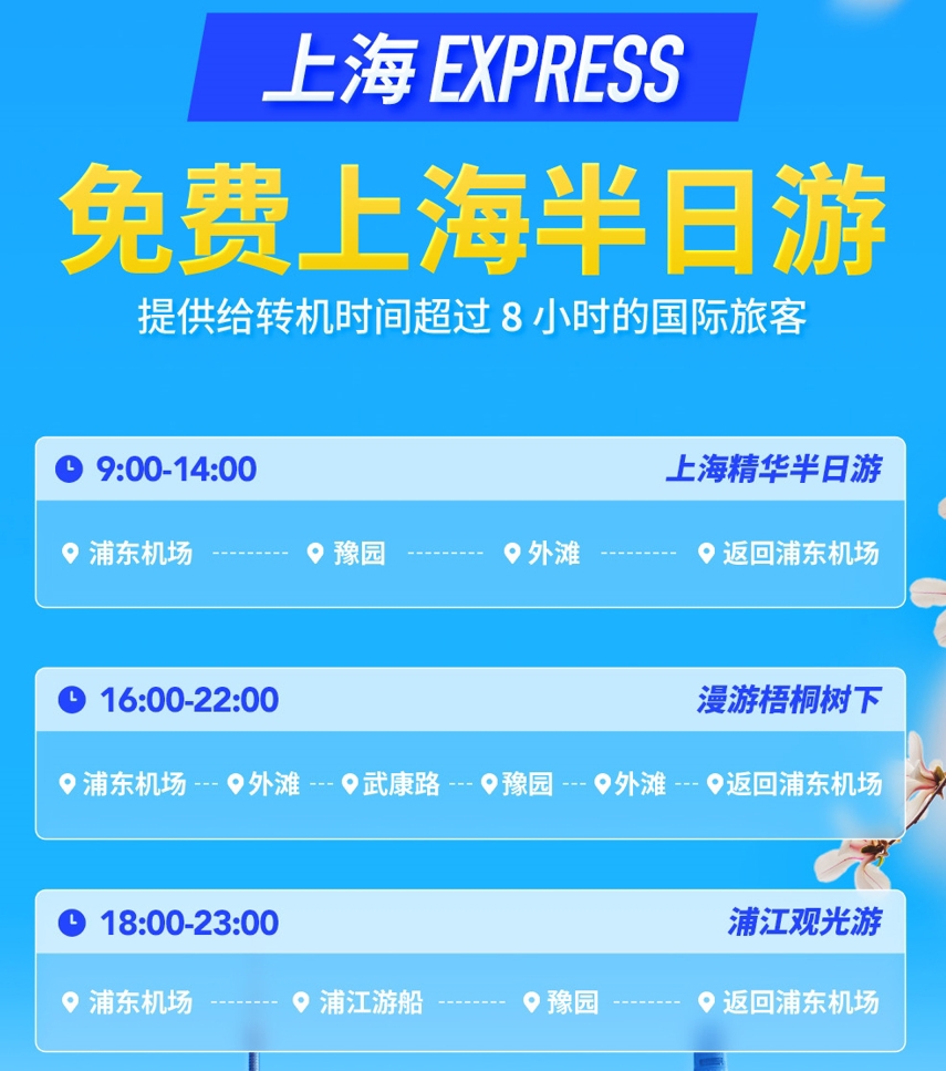 “入境游客免费上海半日游”涵盖早中晚三个时间段。